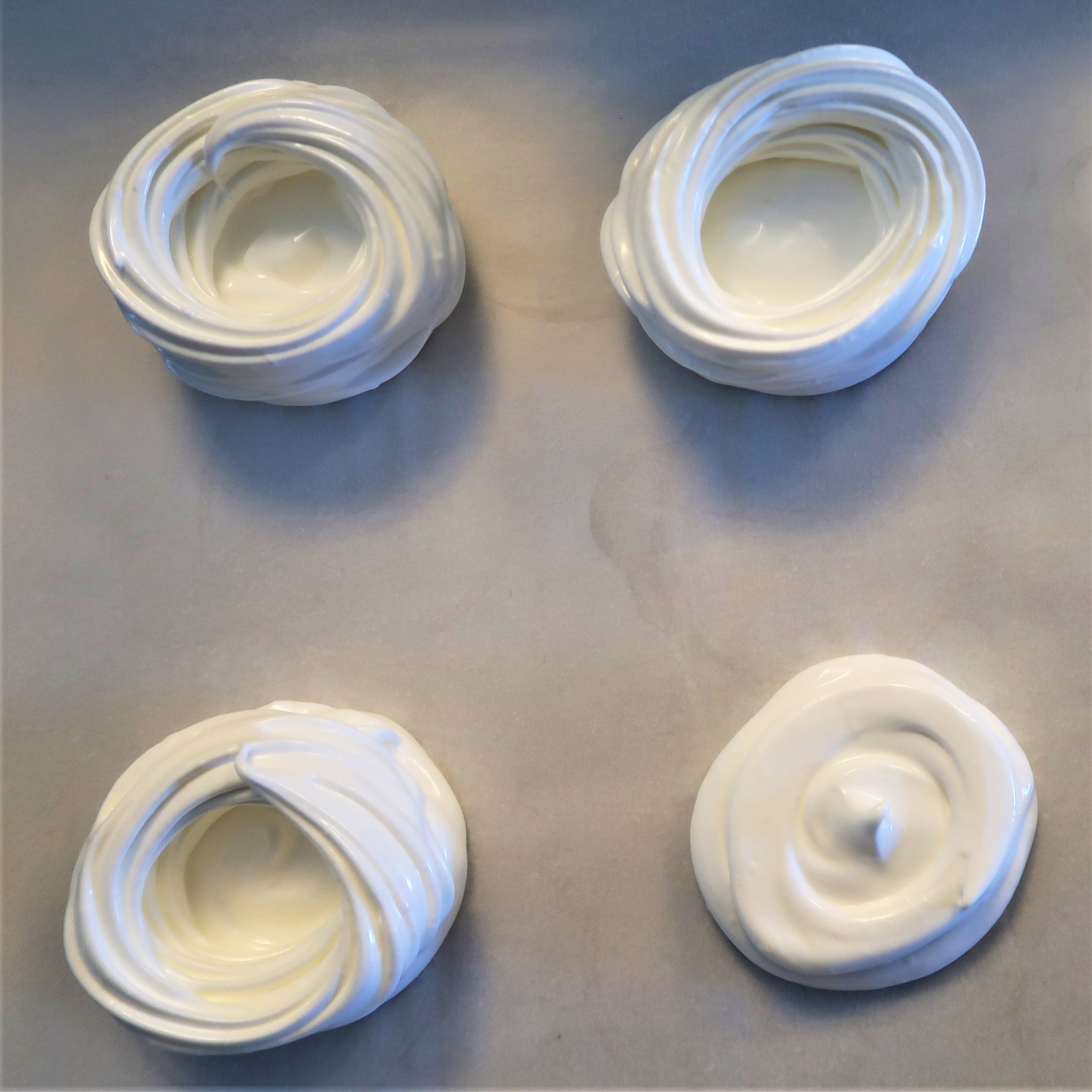 Put some of the whites in a piping bag and make eight 2 inch circles.